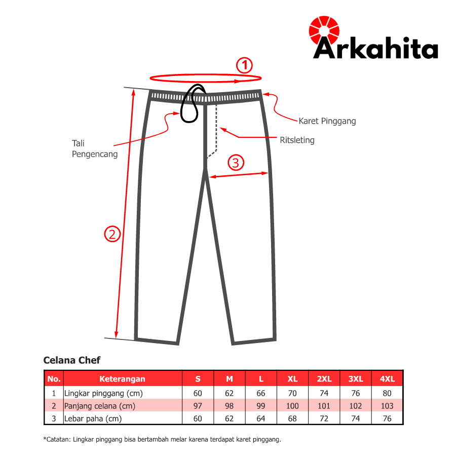 Celana chef yang kami jual dikenal dengan beberapa sebutan, diantaranya: chef trouser, chef pants, celana koki, cook pants, chef work pants, celana cook, dan lain-lain.